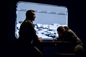 Compagnie de L’Œil Brun – Conception, écriture et mise en scène Karim Hammiche – Dramaturgie, collaboration artistique Leïla Anis – Jeu Karim Hammiche, Laetitia Poulalion, Iris Pucciarelli
