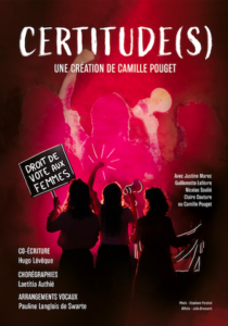 Quatre artistes nous embarquent, dans un cadre contemporain et intimiste, à la conquête du droit de vote des femmes. Le tout émaillé de chansons a capella, danse contemporaine et interactions avec le public.