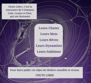 Chute Libre, c’est le voyage de trois Femmes, trois solitudes, qui vont disparaitre dans leur propre chute au même moment pour renaître ensemble.