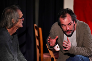 C’est donc bien un « spectacle » qui se veut mouvant, les protagonistes et les textes peuvent changer d’une représentation à une autre, d’un lieu à un autre : nous jouerons tous les mois et partout où nous serons accueillis.