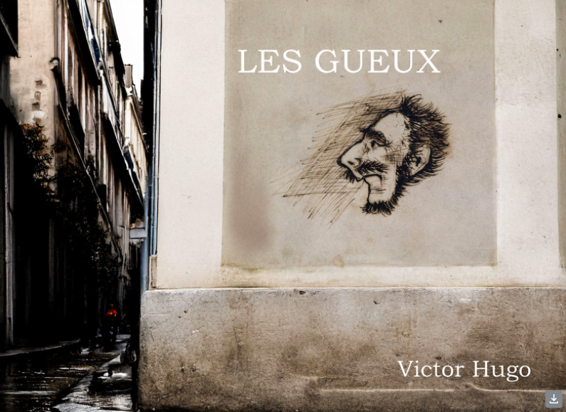 LES GUEUX, suite réaliste et cruelle de saynètes composées par Hugo dans les années qui suivent son retour d’exil après la chute de Napoléon III, et qui nous font entrer dans un monde disparu, révolté et joyeux ; arrogant et désinvolte ; insolent et audacieux ; irrespectueux, sans espoir et plein de rêves.